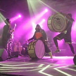 Spacy, trippy keys en een schreeuwerige zwerm uitwaaierende gitaren worden bij mekaar gehouden door een batterij repetitieve percussie en een fundament van donderende bassen. De vocals zijn rauw en niemand minder dan Batman zelf neemt de lead in het monumentale Demonica. Zowel de rauwe, onstuimige energie van The Stooges, de loden zwaarte van Black Sabbath als het universum van GOAT weergalmen in de sound van DREUN XL. DREUN XL is muziek van en voor ongefilterde superhelden! Superhero Brut Rock!